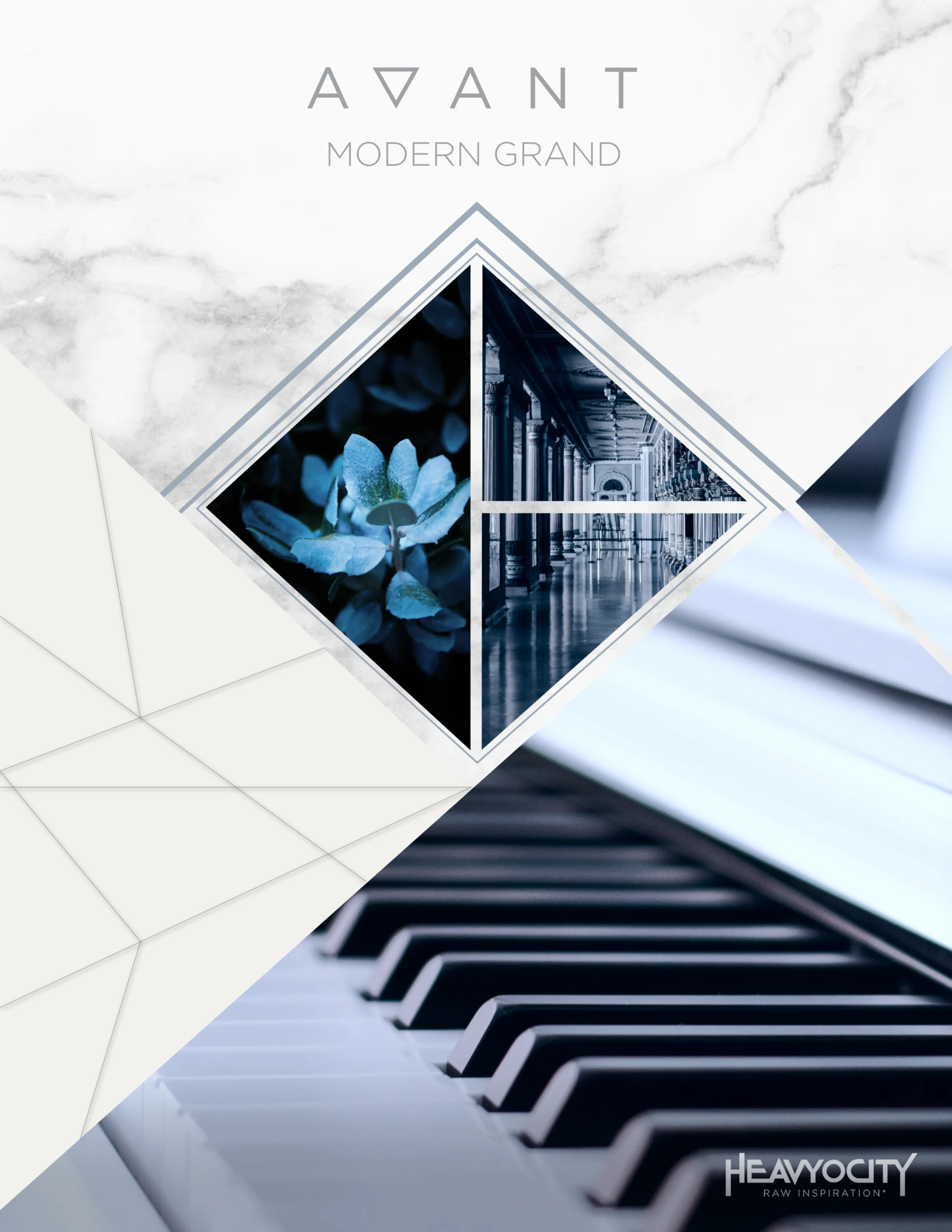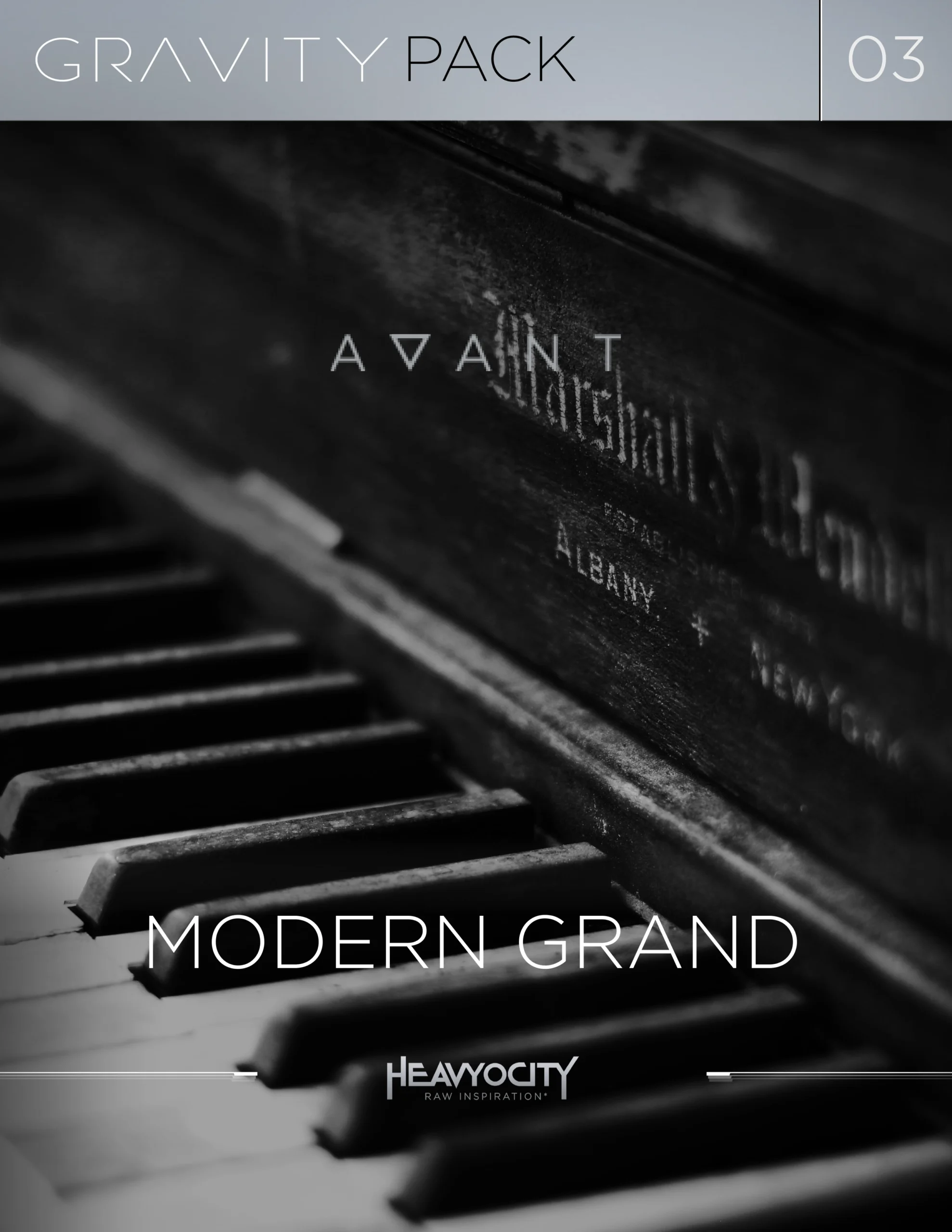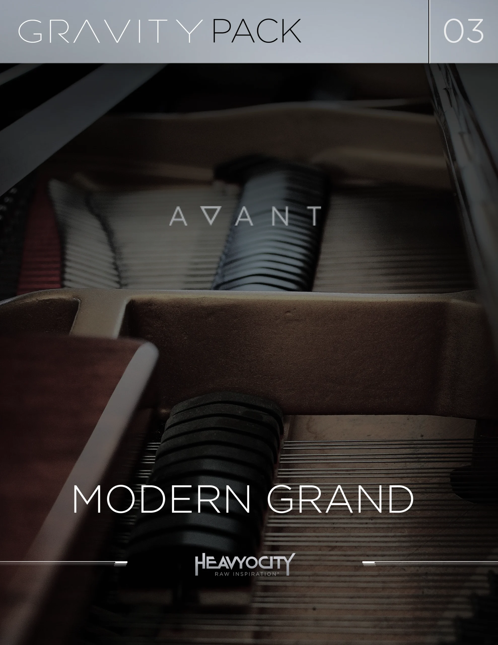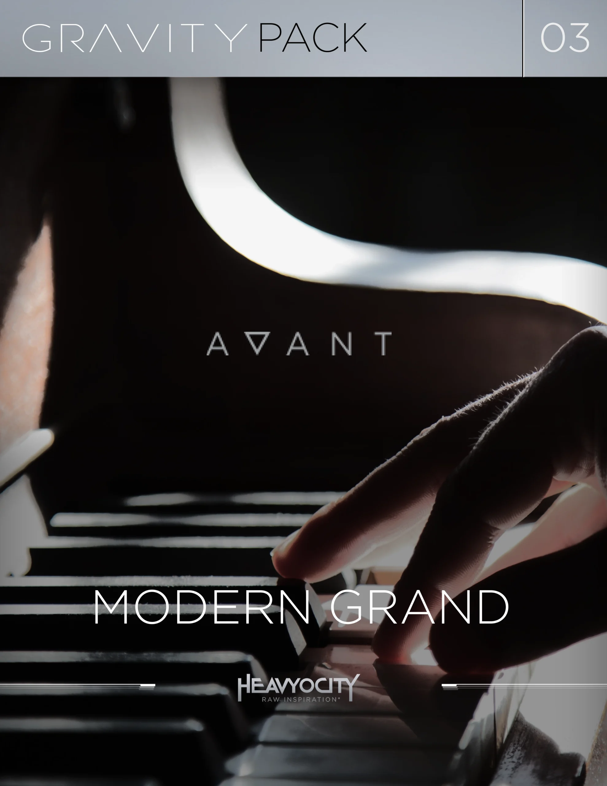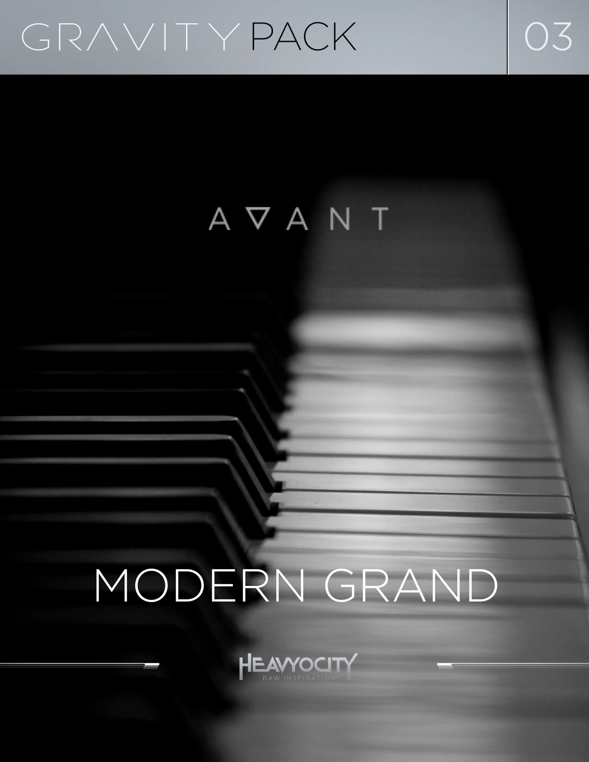 This project was a digital packaging design pitch created for Heavyocity for their Avant Modern Grand piano library. The goal was to explore a premium visual direction that could represent the tone, depth, and realism of the instrument while standing out in a competitive audio software marketplace. The pitch focused on creating a cohesive visual system that could scale across multiple gravity packs and product variations.
