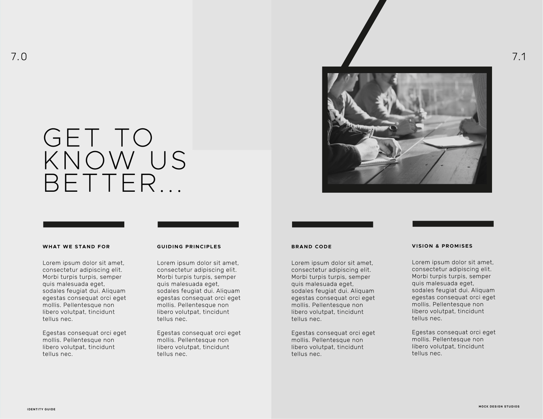 This project is a fully realized mock brand guide created in Figma for presentation and portfolio purposes. The goal was to build a comprehensive identity system for a fictional design studio, including typography, logo variations, color usage, layout rules, and brand voice. Rather than creating just a logo or a moodboard, the intention was to produce a complete, structured guide similar to what real studios deliver to clients during brand identity handoffs.