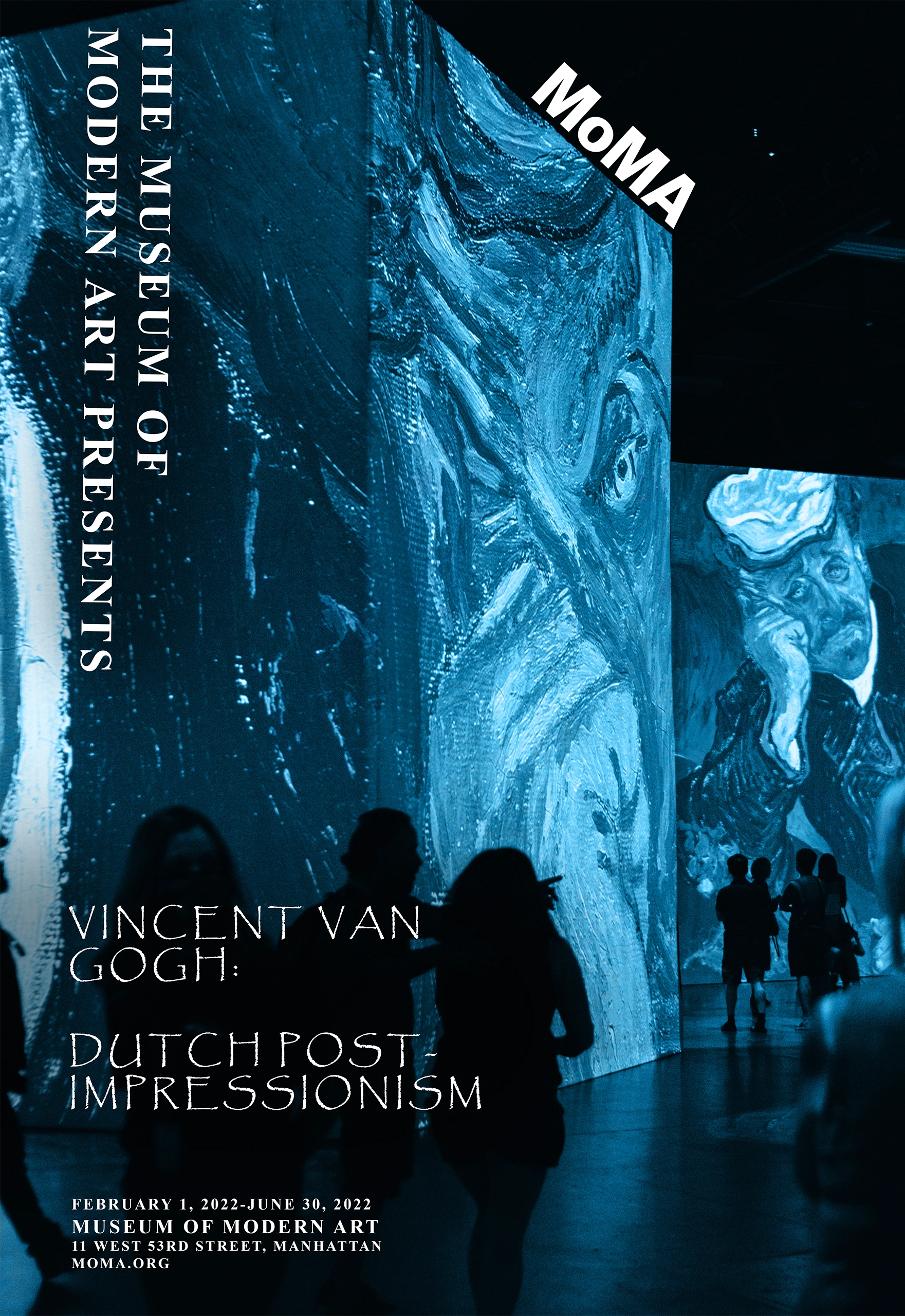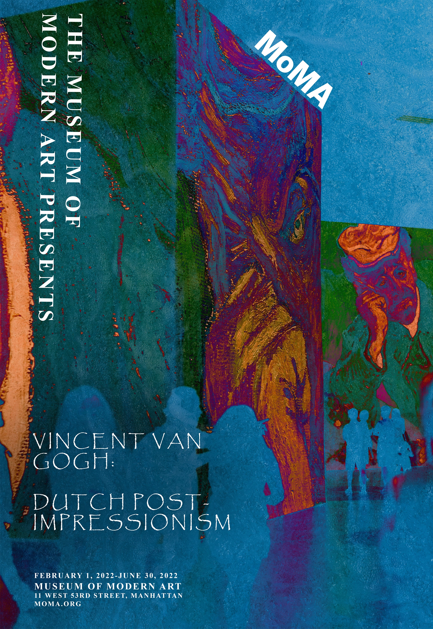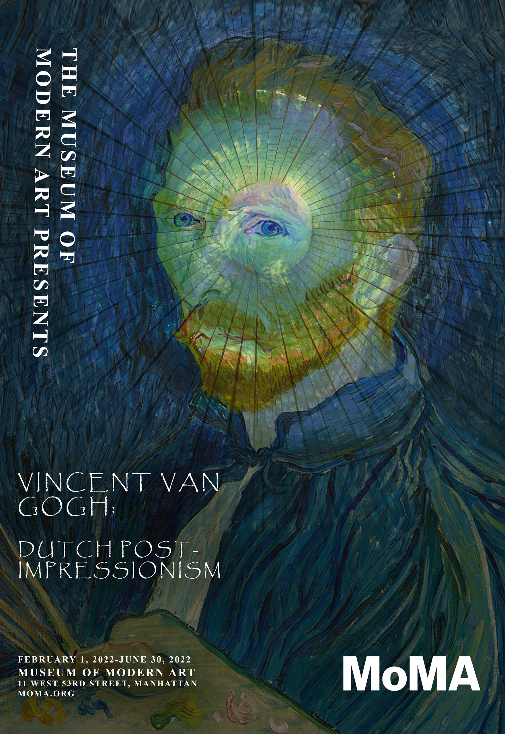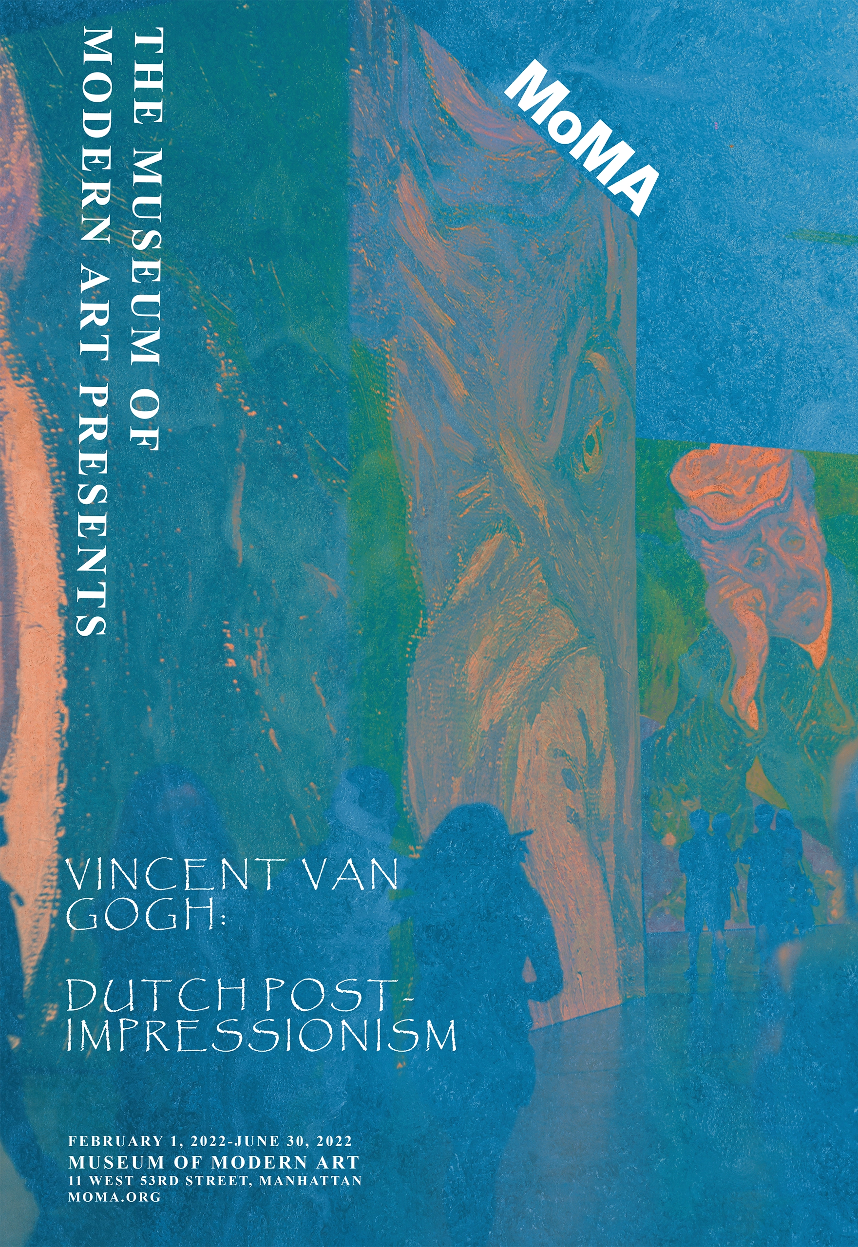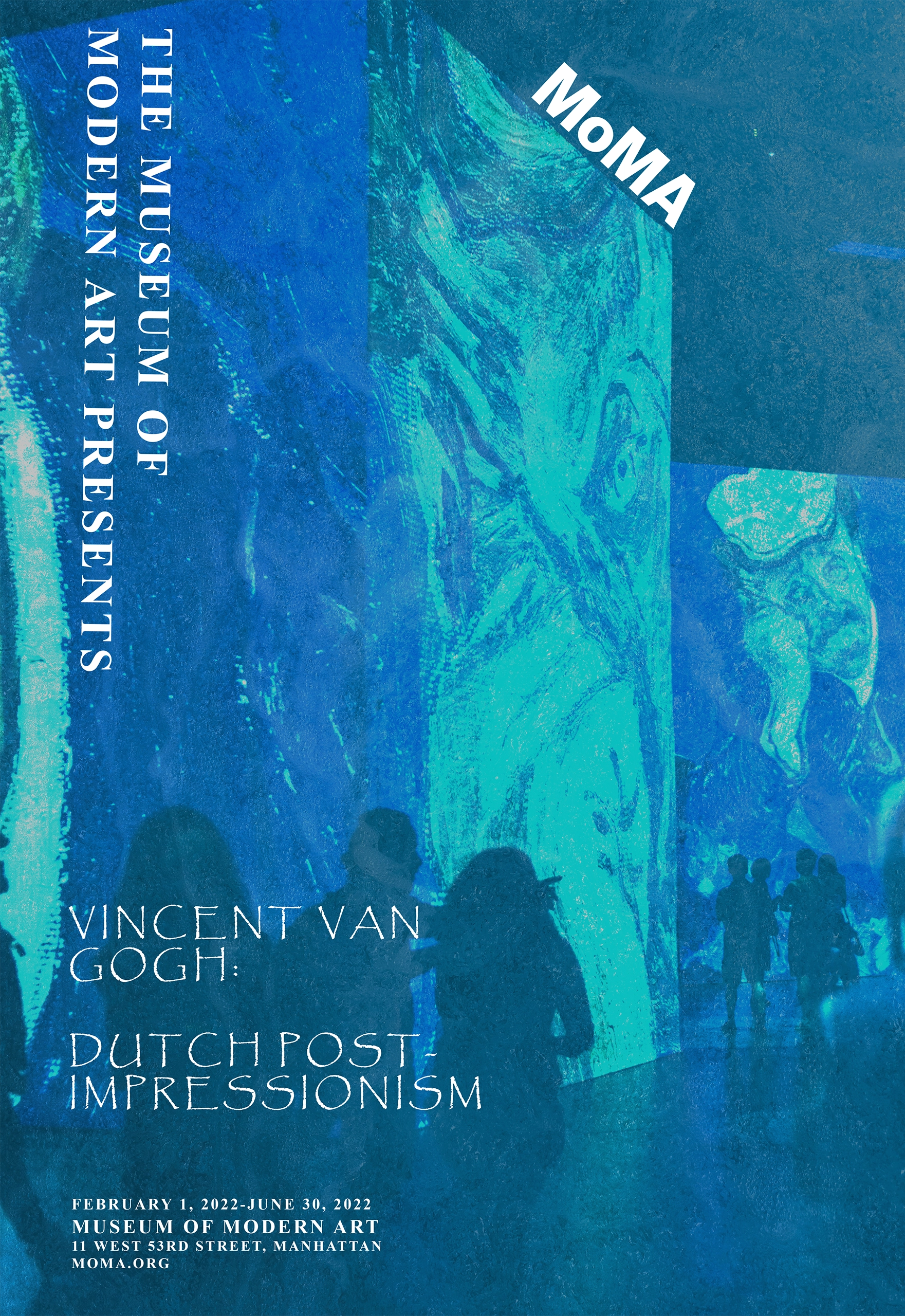 This project was a self-initiated design challenge focused on creating modern poster concepts for a Vincent Van Gogh exhibit at the Museum of Modern Art. There was no client or official prompt beyond exploring how classic artwork could be framed through a modern graphic lens. The goal was to merge museum level aesthetic with bold, modern visual treatments.