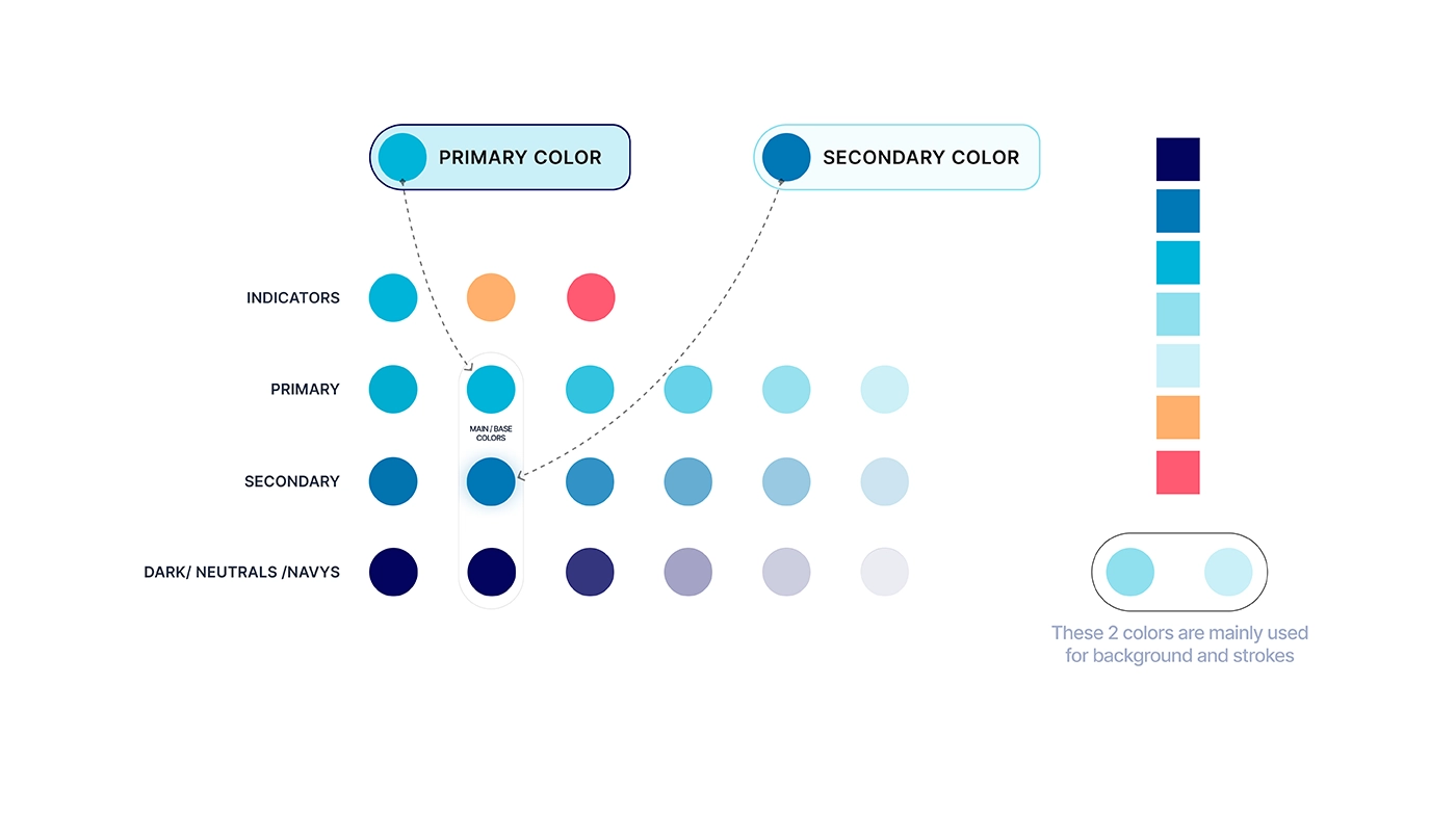 I then created a color palette based on the clients request to have ‘blue’ as the main color. I experimented with different palette arrangements but eventually settled on the perfect one as shown below.